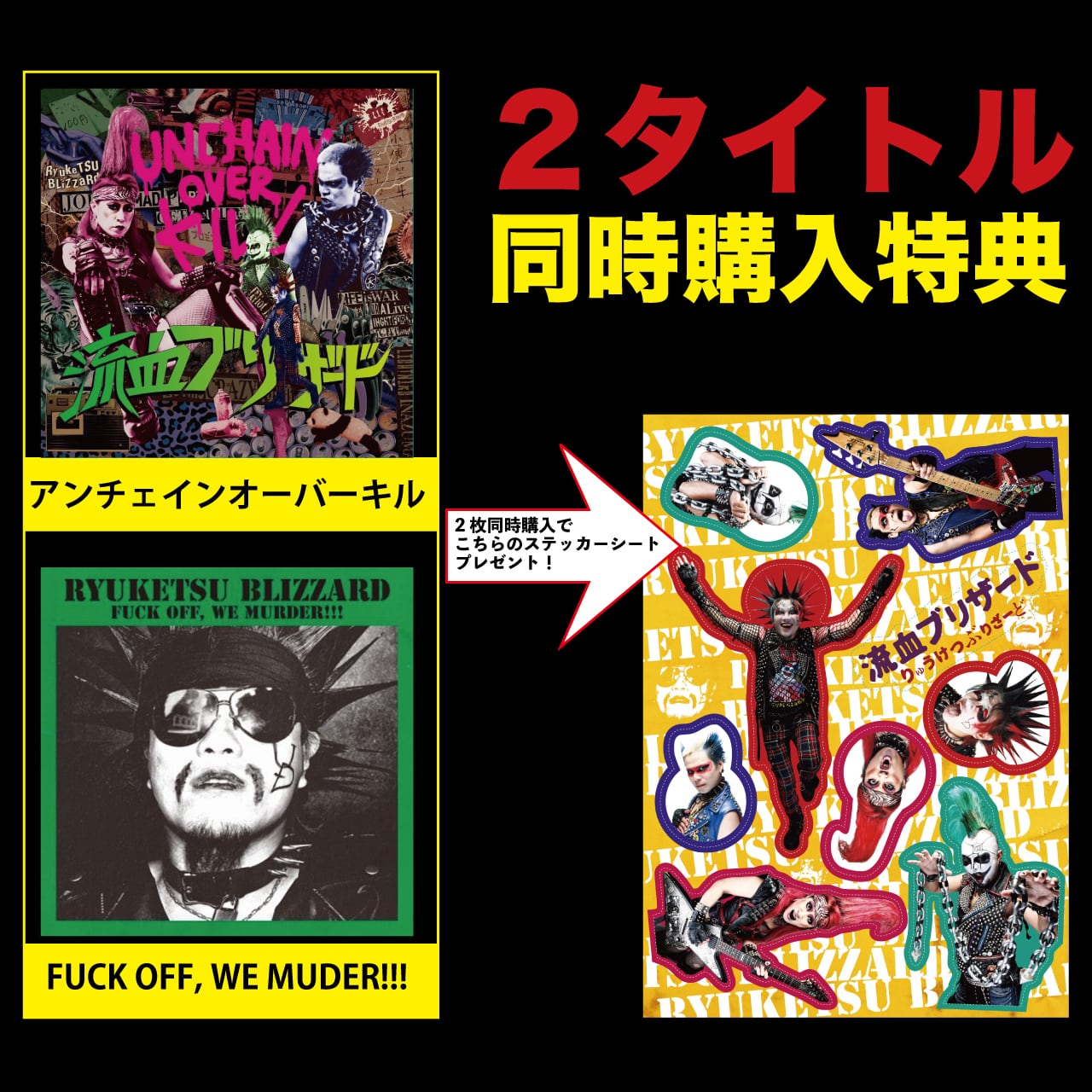 また、アルバム「FUCK OFF, WE MURDER!!!」と同時購入でオリジナルステッカーシートをプレゼント!